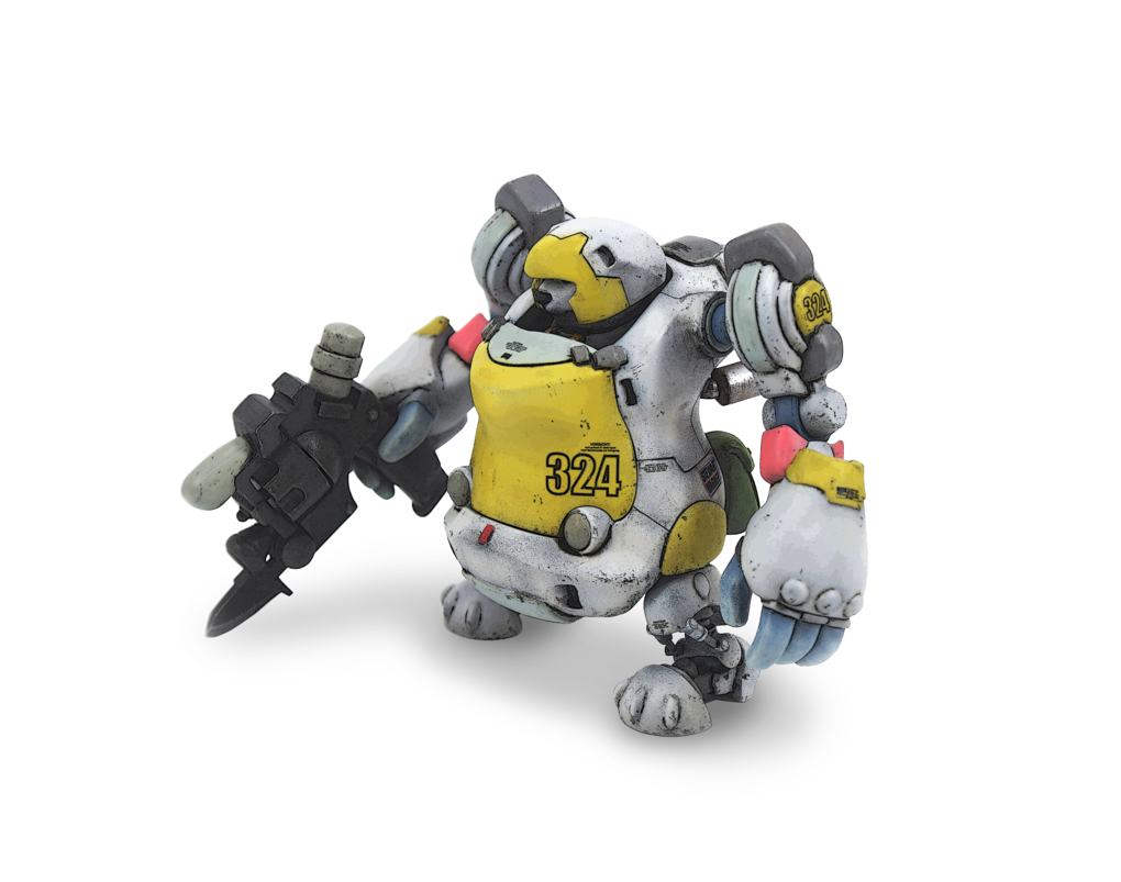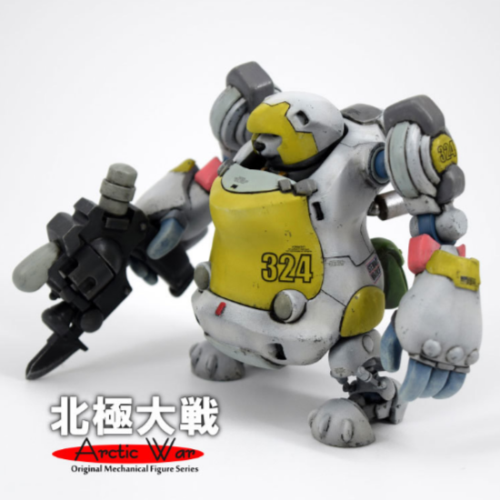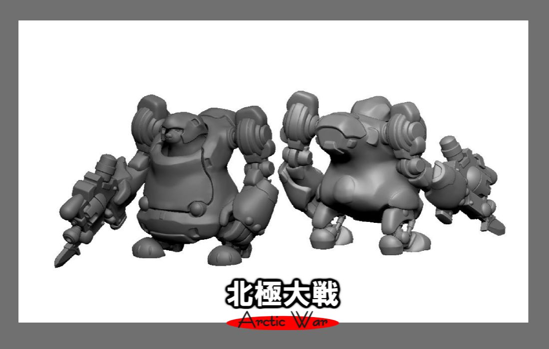 シロクマ軍団の『子シロクマ』を保護・戦力化することを目的に開発されたメカ。伸び伸びと搭乗できる立ち乗り式が特徴の新たなシロクマロボ。手持ち式兵器の運用が可能な新設計マニュピュレータなどを装備。ハッチの開閉も出来てパイロットの乗降を楽しむことができます。