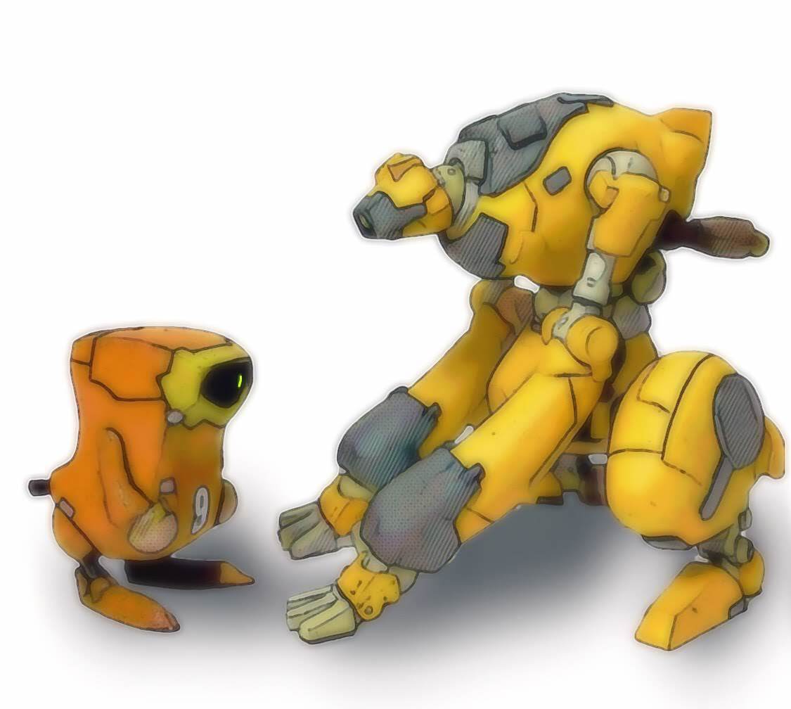 元々はロボット同士が競うゲームに使われたロボで、実用機をはるかに上回る動力と様々な武装やオプションの装備を換装できるのが特徴。戦闘力に不安がありそうなサークルフェイスやペンタゴンには頼もしい仲間です。